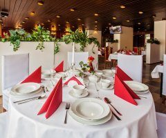 W restauracji Olimpia serwowane są śniadania oraz smaczne dania, głównie kuchni polskiej. Obiekt posiada również salę konferencyjną dla 70 osób wyposażoną w sprzęt multimedialny i nagłośnienie. Można w niej zorganizować szkolenia, konferencje, seminaria, a także uroczystości rodzinne.